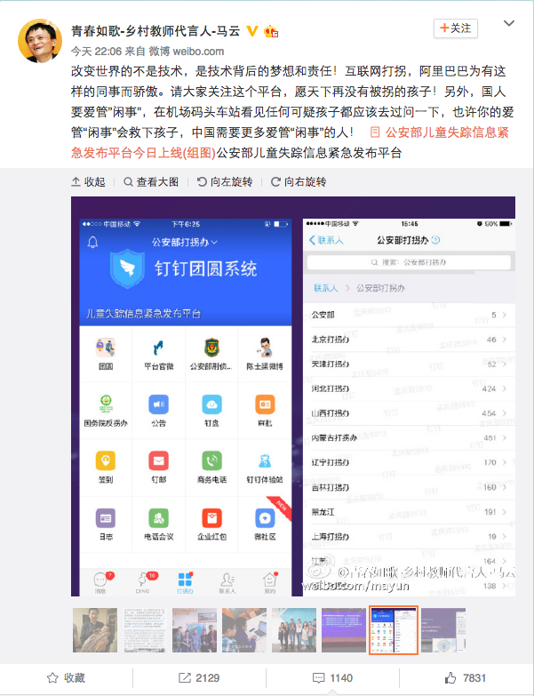 人物動(dòng)態(tài) | 阿里技術(shù)男建打拐平臺(tái) 馬云呼吁國人“多管閑事”